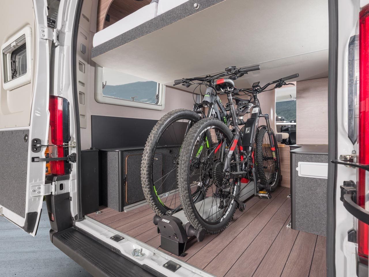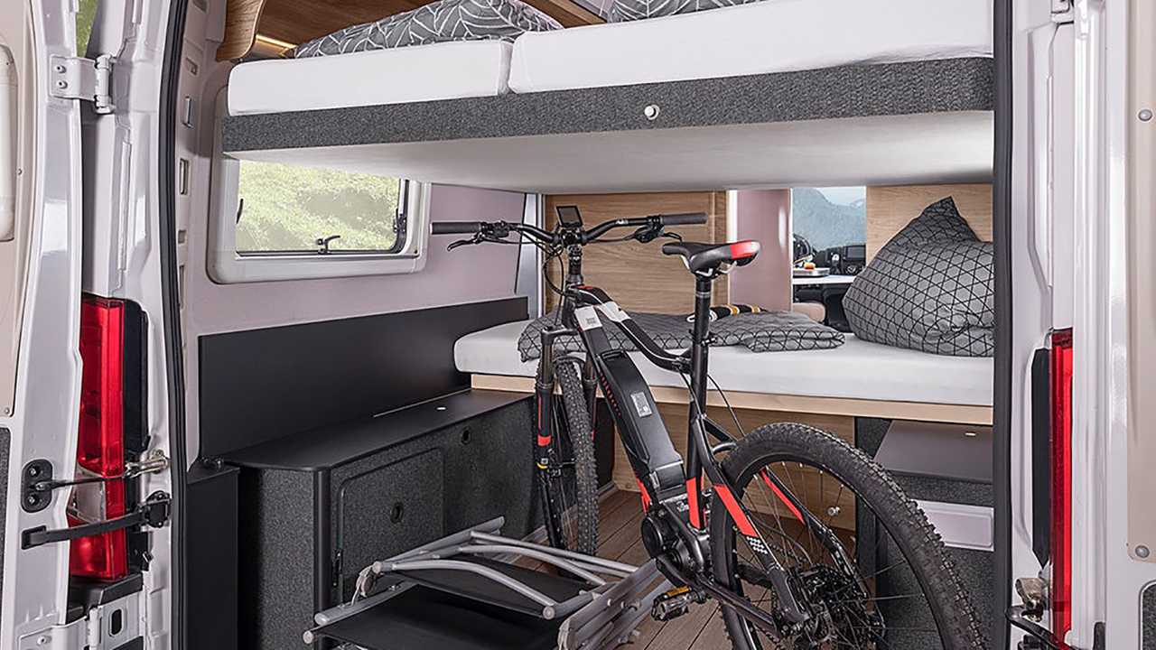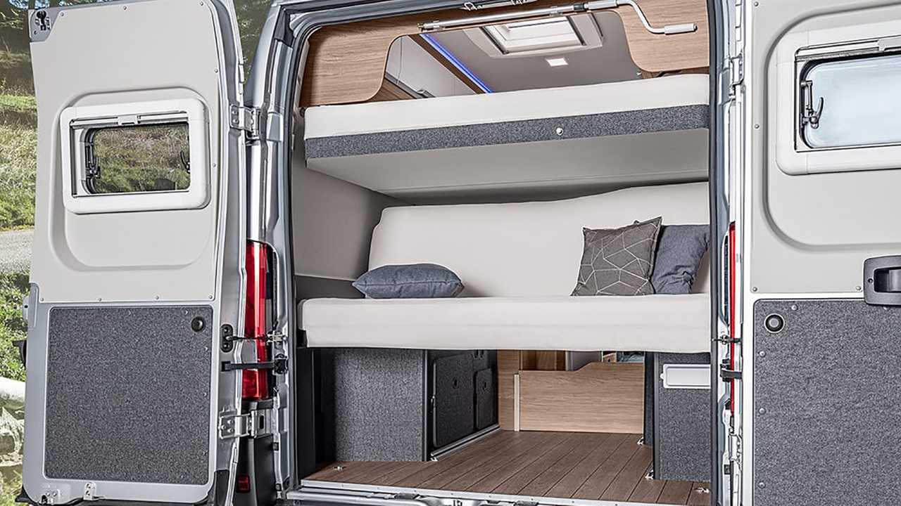 - Eines davon ist ein fest verbautes Hubbett, das andere ist variabel als Etagenbett nutzbar